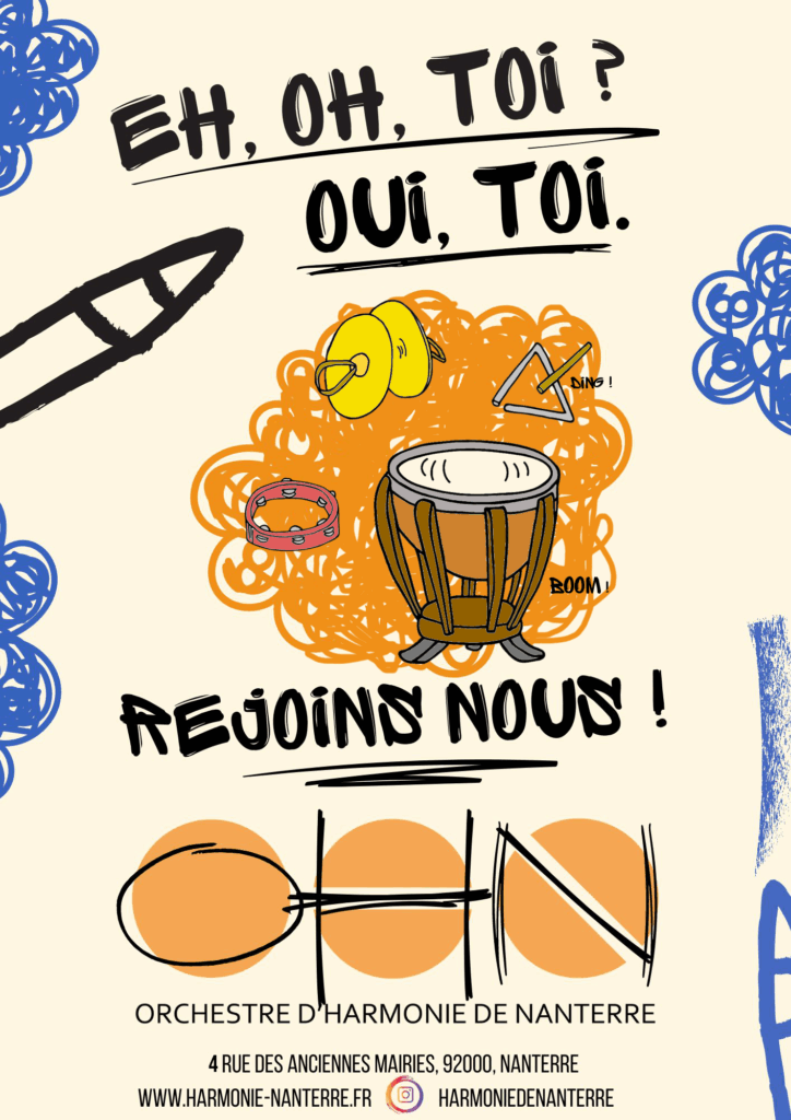 Tu es musicien.ne amateurice, de Nanterre ou d’ailleurs ? tu es instrumentiste à vent, percussionniste ou contrebassiste ? Tu as envie de découvrir une nouvelle manière de pratiquer la musique, depuis l’intérieur de l’orchestre ?
