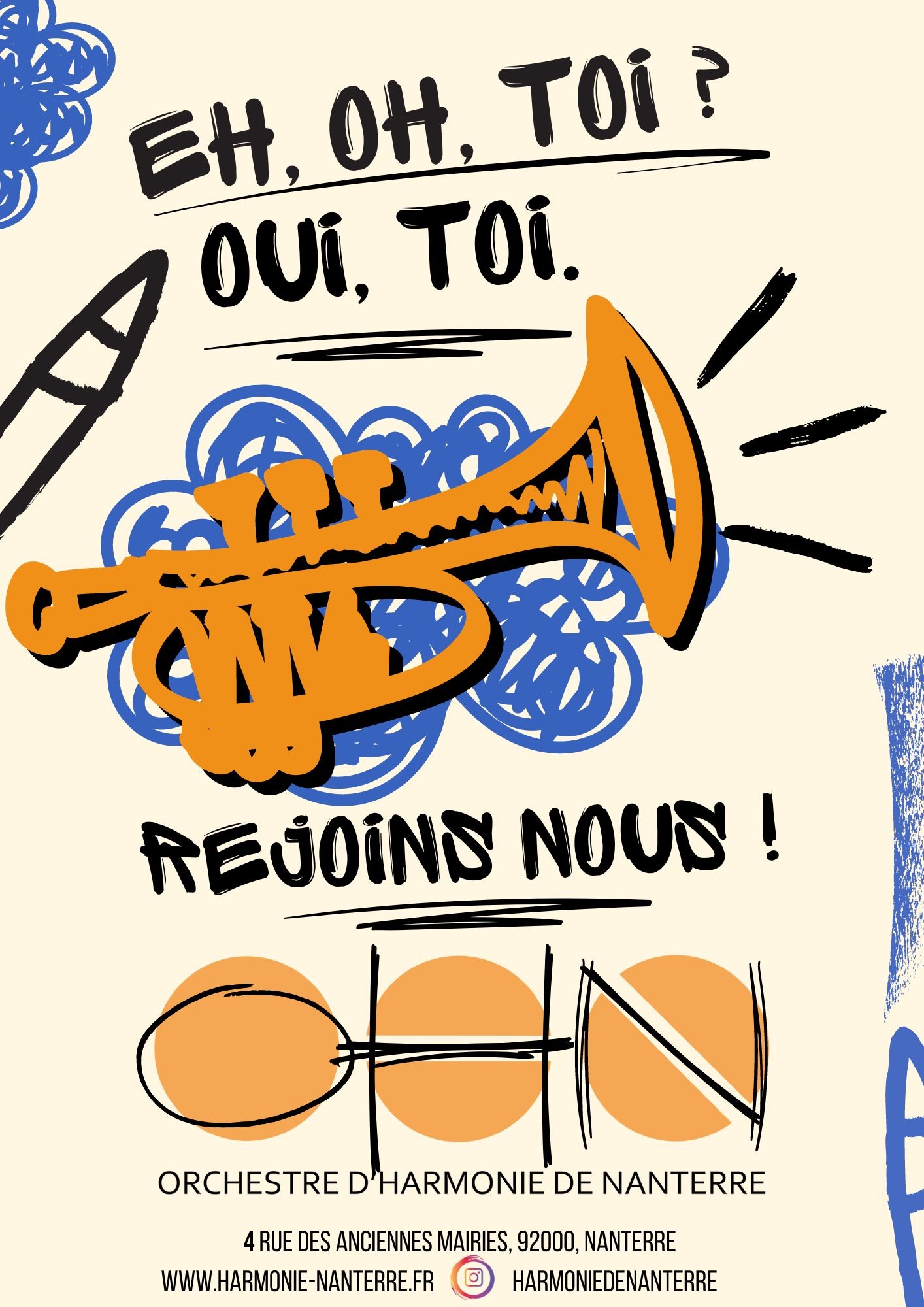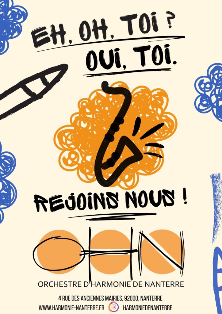L’association de l’Orchestre d’Harmonie de Nanterre t’attend, viens pratiquer avec nous la musique d’ensemble ! Les répétitions ont lieu tous les jeudis, de 20h à 22h, en salle Stravinsky, à la Maison de la musique de Nanterre, 8 rue des Anciennes Mairies.